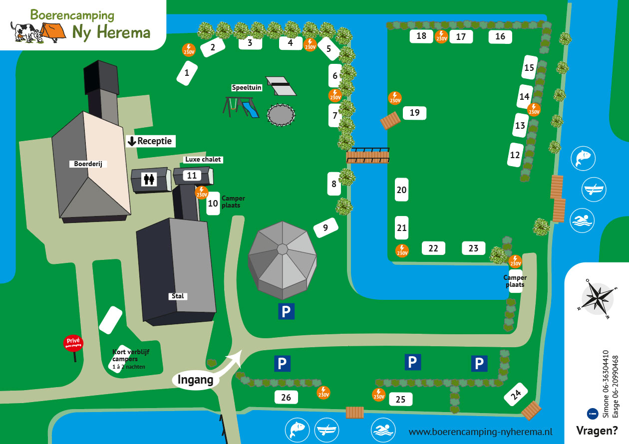 " We werden hartelijk ontvangen door Simone die ons meteen vertelde waar alle voorzieningen waren en ons naar de plaats bracht. Mooie camping, ruimte plaatsen leuke bezienswaardigheden in de omgeving. Hebben 3 heerlijke weken gehad. "